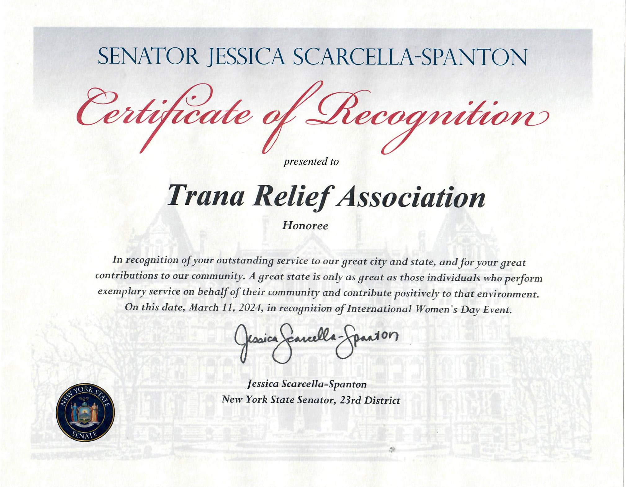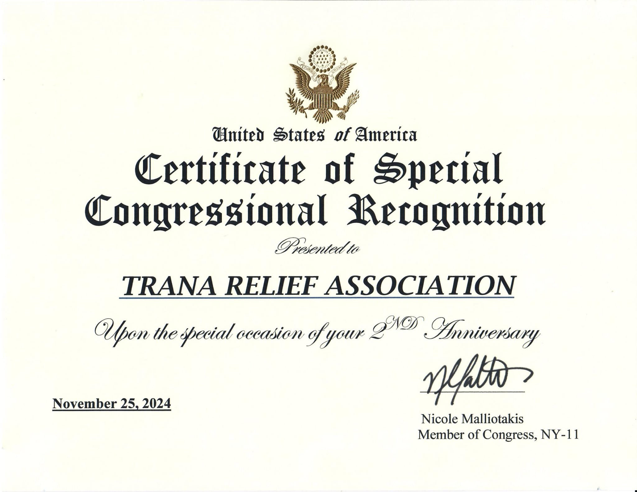 TraNa Relief Association has been recognized by elected officials, featured in certified government programs, and highlighted in numerous newspaper articles and television segments. These acknowledgments reflect the strength of our mission and the growing support behind it.